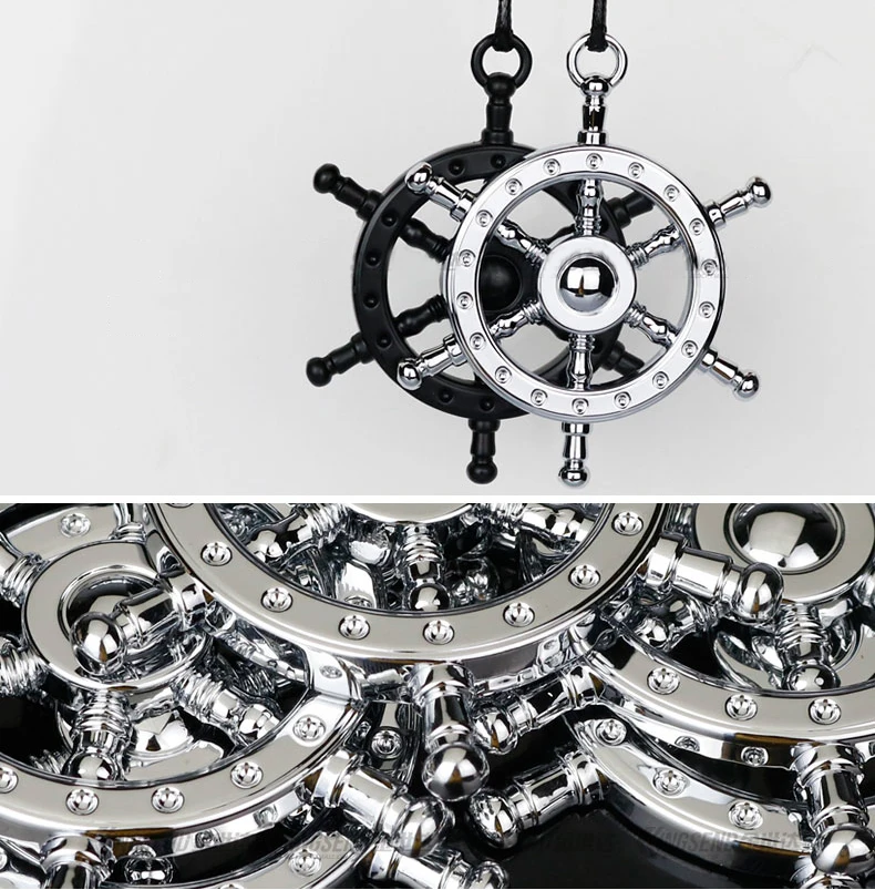 Car Pendant Chrome 3D Metal Zinc Rudder Helm Automobiles Interior Rear View Mirror Hanging Ornament